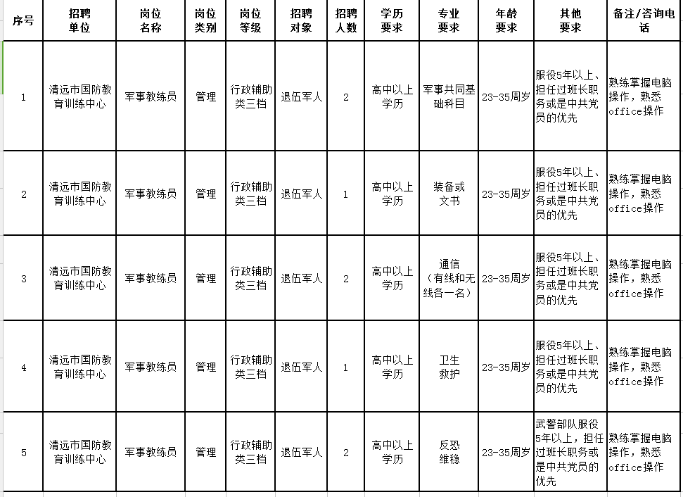 清遠(yuǎn)市國(guó)防教育訓(xùn)練中心2020年公開招聘工作人員公告